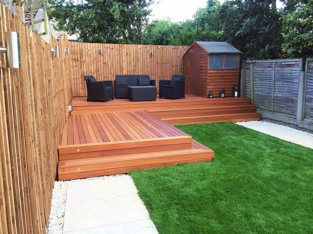 Just as with patios you should consider what the main uses of the decking will be so that we can design in everything that you require. Decking can be ideal for steeply sloping land as we can built in steps to any height and use the space underneath to run cables for lighting and sockets if required.